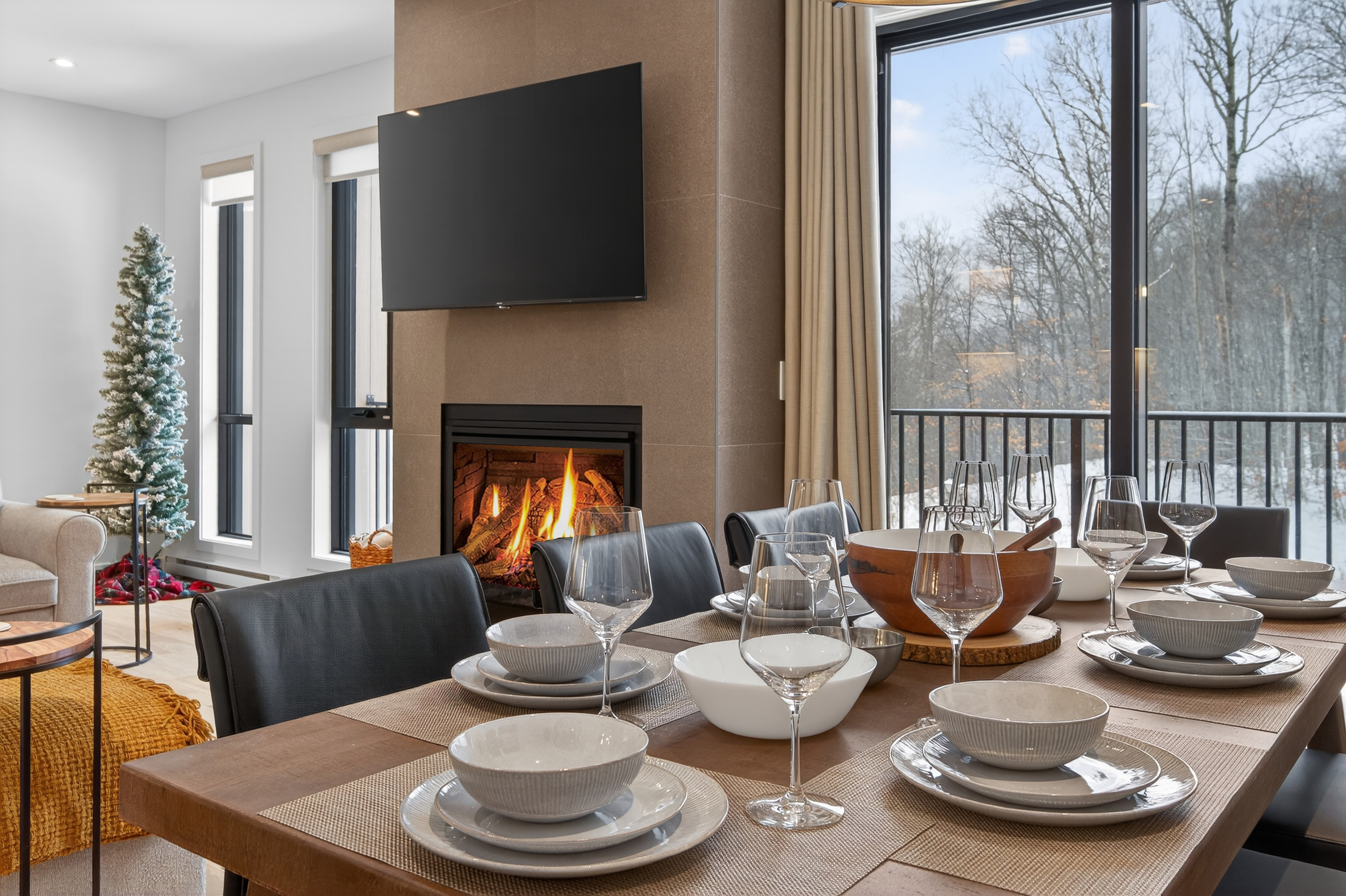 Escape to this spacious, luxurious new condo on Tremblant's Versant Soleil. A 7-minute walk from the Algonquin green ski trail. Direct access (20 meters) to the Nord-Sud hiking, mountain biking and alpine trail. This condo is located near the Casino, Golf Le Géant and Golf Le Diable. Just a 5-minute drive away, enjoy Tremblant's pedestrian village with its restaurants and boutiques. Spend your stay in a bright, modern space, fully equipped to relax in top-of-the-range comfort.